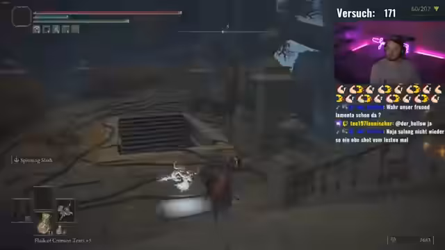 02:08:50Nach einem langen und anspruchsvollen Kampf gegen einen Boss, der in mehreren, besonders gefährlichen Phasen mit Explosionen aufwartet, ist der Streamer erfolgreich. Er ist erleichtert und gibt zu, dass er einige Kassiert, aber auch selbst viel Schaden gemacht hat. Ein Zuschauer erwähnt, er sei durch eine Katakomben gekommen, die für den Streamer eine der schlimmsten war. Der Streamer erzählt vom PvP-Erlebnis in der Höhle, wo er von einem DLC-Bogen-Gegner umzingelt war und nur durch Glück und Glück einen Kampf überlebte.