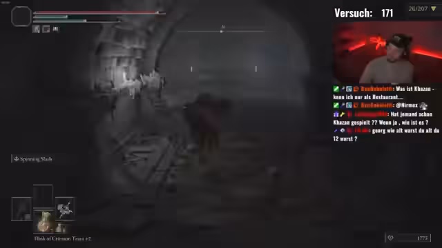 06:05:17Die Streamer sind kurz vor dem Ziel von 75 Bosse und stoßen auf eine Reihe gefährlicher Gegner, darunter 'Rykard, der Blutfresser' und 'Godrick'. Der Kampf gegen 'Rykard' wird als lang und mühsam bezeichnet, da er viel Ausdauer erfordert und der Gegner schwer zu treffen ist. Ein weiterer, sehr nerviger Boss in einer Höhle wird ebenfalls besiegt, was als成就 gefeiert wird.
