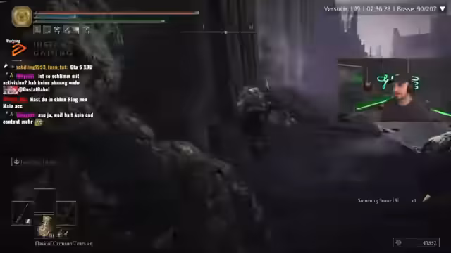 04:32:21Der Fokus liegt auf einer laufenden Challenge im Spiel Elden Ring, bei der der Streamer versucht, sämtliche Bosse ohne Waffen-Upgrades zu besiegen. Er kämpft gegen schwierige Gegner wie Solitary Knight und Black Knife Assassin, wobei er über unfaire Attacken, geringen Schaden und Frustration mit manche Bossdesigns klagt. Gleichzeitig ist er auf der Suche nach spezifischen Upgrade-Steinen und Items, um seine Ausrüstung und Überlebensfähigkeit zu verbessern, was seine Runde verlangsamt und kompliziert.