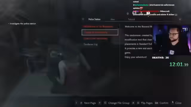 00:02:04Der Stream beginnt mit der Bestätigung des Zugriffs der Zuschauer und einer Danksagung an Ocelot für die Unterstützung. Es folgen Glückwünsche an ein Geburtstagskind und humorvolle Anmerkungen zu DLCs und Kostümen. Der Streamer startet einen Hardcore-Run mit dem klassischen Outfit und Revolver, wobei Fragen zur Vertrauenswürdigkeit der App aufkommen. Ein Hund wird vermisst, und es wird über mögliche Updates des Randomizers spekuliert. Der Run beginnt mit dem Absuchen nach Gegenständen, wobei ein Hund entdeckt und ein Herzschlüssel gefunden wird. Eine unerwartete Begegnung mit einem Gegner an einer Tür sorgt für einen Schreckmoment. Vorsichtige Navigation durch das Spiel, wobei Mr. X gehört wird und die Suche nach einem sicheren Weg fortgesetzt wird. Es wird überlegt, wie man Mr. X im Büro verstecken kann, aber der Zugriff darauf fehlt. Die Erkundung führt zu einer unangenehmen Entdeckung eines großen Gegners in einem Raum, was zu einer Flucht führt. Der Streamer erwägt verschiedene Strategien, um mit den Gegnern umzugehen, darunter der Einsatz von Flashbangs und Granaten.