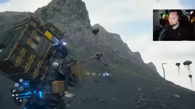 04:04:47Auf dem Weg zum Zielort wird die Notwendigkeit eines Akku-Stationen deutlich. Nachdem eine Station errichtet und ein Fahrzeug aufgeladen wurde, wird eine Verbindung zu einer Seilrutsche hergestellt. Der Streamer nutzt die Seilrutsche, um einen weiten Abstand zu überbrücken. Er erreicht daraufhin einen neuen Bereich, der an den ersten Teil des Spiels erinnert und belohnt den Fortschritt mit einem Stern.