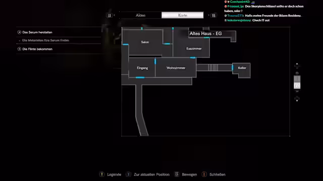 06:28:09Nach dem Verlassen des Schiffes kehrt der Streamer in die Gegenwart zurück und stellt fest, dass wichtige Gegenstände fehlen. Er begibt sich an einen Lagerplatz, um Waffen wie die Pistole M19 und Granaten zu beschaffen und Heilungsgegenstände herzustellen. Dabei bespricht er die weiteren Schritte, um den Kapitänsschlüssel zu finden und die nächste Area zu betreten. Die Vorbereitungen werden genutzt, um den Zuschauern die Spielmechaniken zu erklären und sich auf bevorstehende Kämpfe vorzubereiten.