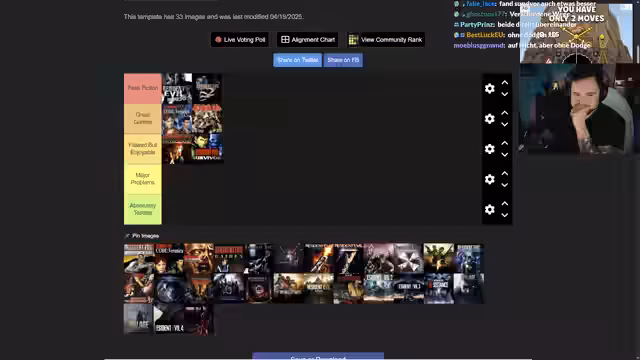 03:30:14Der Chat diskutiert, welches Resident Evil als nächstes gespielt werden soll. Nach Abwägung von Optionen wie Deadly Silence (RE1 DS-Version) wird entschieden, Resident Evil 4 im Originalversion (OG) ohne Mods zu spielen, um die Story vollständig zu erleben. Dies folgt dem chronologischen Plan: Zuerst die OG-Versionen von RE0-3, später dann die Remakes. Es wird betont, dass beide Versionen (OG und Remake) gespielt werden, um Unterschiede zu erkennen und sich über Resident Evil 3 aufregen zu können. Technische Vorbereitungen für den PC-Emulator werden getroffen.