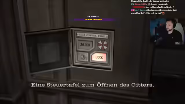 00:19:31Die Streamerin präsentiert Dead Aim als Teil des Marathons und erklärt den Hintergrund: Es ist ein PS2-Titel aus dem Jahr 2003, der ursprünglich mit einer Light Gun gespielt werden konnte. Sie lobt die Atmosphäre auf dem Umbrella-Cruiser und teilt ihre Freude über das Spiel, das sie zu Weihnachten geschenkt bekam. Während des Einstiegs in die Handlung wird die Story um den T-Virus-Diebstahl durch Morphois Stival erläutert und die Charaktere Bruce MacGyver und Morpheus vorgestellt, wobei sie auf Copyright-Probleme bei der Nutzung von Leon und Ada anspielt.