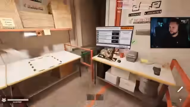 01:38:45Zu Beginn des Stream-Ausschnitts erkundet der Streamer die Lagerhalle, die ihm nach eigenen Worten stark an das Spiel Shadow Moses erinnert. Er beobachtet die Umgebung scharf, um sich vor einem Verfolger zu verstecken und interagiert mit den Gegenständen. Der erste signifikante Akt ist das Kaufen von billigem Katzenfutter für 20 Einheiten, um die Zufriedenheit der Katze zu regenerieren, bevor er sich auf die Suche nach Paketen begibt und dabei einer wachsenden Nervosität ausgesetzt ist.