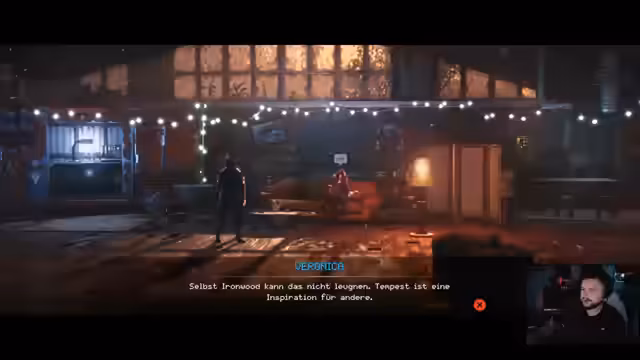 05:10:56Der Streamer lernt Veronica näher kennen, die mit einem Halsband sprechen kann und eine verlorene Stimme hat. Es werden Hinweise auf Tempests Vergangenheit und seine Rolle als Beschützer der Gemeinschaft gegeben. Er versucht, Reach zu integrieren, zeigt aber auch seine komplexen Seiten mit mangelnder Geduld und innerem Konflikt.