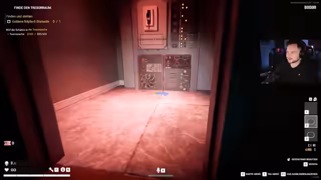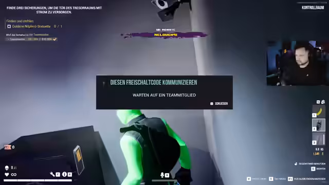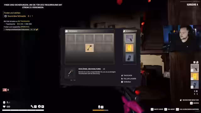 03:59:48Der Stream beginnt mit technischen Schwierigkeiten bei der Lautstegulation und der Erstellung einer privaten Lobby für 'Dark Hour'. Nachdem der Code erfolgreich an die anderen Streamer verteilt wurde, starten das Spiel. Die Gruppe erkundet als 'Diebe' ein Labyrinthartiges Gebäude, sammelt Schätze und muss Hindernisse wie Laser und aggressive Clowns meistern, wobei sie auch ihre erbeuteten Gegenstände in einer gemeinsamen 'Teamtasche' lagern müssen.
