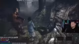 03:55:00Der Stream beginnt mit einer Erkundungsphase auf einer mysteriösen Insel. Der Spieler kämpft mit der Umgebung, die wie ein Survival-Game anmutet, und sucht nach sichtbaren, aber nur von einem Mädchen auffindbaren Käfern. Währenddessen werden Notizen von verschleppten Männern gefunden, die eine unbekannte Person zur Vosek ruft. Es werden Waffen gefunden und Upgrades wie eine Pistolenmunitionserweiterung hergestellt. Ein unheimlicher Gegner wird entdeckt, dessen Design an The Evil Within erinnert.