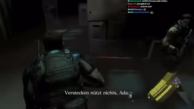 03:07:56Die Mission führt sie zu einem Ort, der an Chris Redfields Erlebnisse in Resident Evil 2 erinnert. Es kommt zu einer Begegnung mit Ada Wong, die jedoch als Verkleidung enttarnt wird. Die Streamerin erfährt, dass sie eine künstlich erschaffene Ada bekämpft, die den C-Virus verbreitet. Ihr Partner Marco stirbt während des Einsatzes, was Chris emotionalen Ausdruck verleihen lässt.