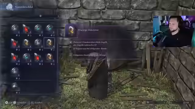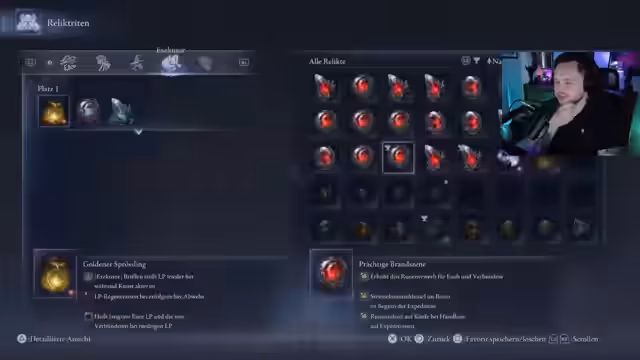 00:08:27Der Fokus liegt auf der Vorbereitung für den Kampf gegen einen neuen Boss. Der Streamer erkundet verschiedene Relikte und Waffenoptionen, um den optimalen Build zu finden. Es wird eine Blitz-Waffe als wichtig identifiziert. Nachdem die richtigen Talente und Runen ausgewählt wurden, startet der Versuch, den Boss alleine zu besiegen, während Zuschauereinflüsse in das Gameplay einbezogen werden.