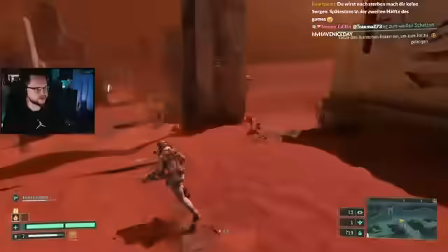 06:33:22Ein Ziel wird die Suche nach dem Haus in den Biomen, das für Story-Progression wichtig ist, doch die Streamerin verläuft sich und kann es im zweiten Biom nicht finden. Während ihrer Erkundung findet sie Story-Elemente, die den Planeten als Ort wiederholter Abstürze und Todesfälle der Protagonistin deuten. Sie entdeckt ein Riff zwischen den Timelines und wird von einer Kreatur als Mutter der Aliens bezeichnet. Ihr Run endet vorerst durch einen Bosskampf, den sie nicht schafft, was sie verärgert.