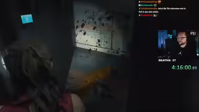 00:25:15Im Laufe des Runs navigiert die Streamerin durch die Polizeistation und die Kanalisation von Raccoon City. Sie konfrontiert sich mit zahlreichen Gegnern wie Mr. X, Lickern und Hunters, wobei sie stets sparsam mit Munition und Heilgegenständen umgehen muss. Sie begegnet dabei mehreren zufällig generierten Hindernissen und muss strategisch backtracken, um wichtige Gegenstände wie Schlüssel und Munitionsspenden zu finden, während sie gleichzeitig dem ständigen Verfolgungsdruck standhalten muss.