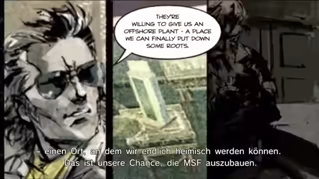 00:27:19Der Fokus verlagert sich auf die Story von Peace Walker, die im Jahr 1974, zehn Jahre nach den Ereignissen von Snake Eater, spielt. Big Boss führt nun die 'Militaires Sans Frontières' (MSF), eine Armee ohne Nation, die in Kolumbien stationiert ist. Er wird von Costa Rica angefragt, um eine mysteriöse militärische Gruppe zu bekämpfen, die die neutrale Bedroht. Die Einführung der Charaktere Paz und Kazuhira Miller erfolgt, die beide eine wichtige Rolle in der weiteren Geschichte spielen werden.