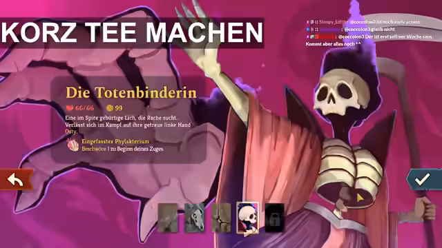 05:40:33Nach dem Sieg über einen Boss wird das neue Gebiet 'Samenmeisterwerk' freigeschaltet, das es ermöglicht, die Spitze mit selbstdefinierten Runs und Seeds zu erklimmen. Der Streamer entscheidet sich dafür, den Charakter 'Totenbinderin' zu testen und gibt eine kurze Beschreibung ihrer Fähigkeiten: Beschwörung von 'Hand' zu Beginn jedes Zuges. Der Streamer ist von diesem Charakter angetan und plant, weitere Runs mit ihm zu machen.