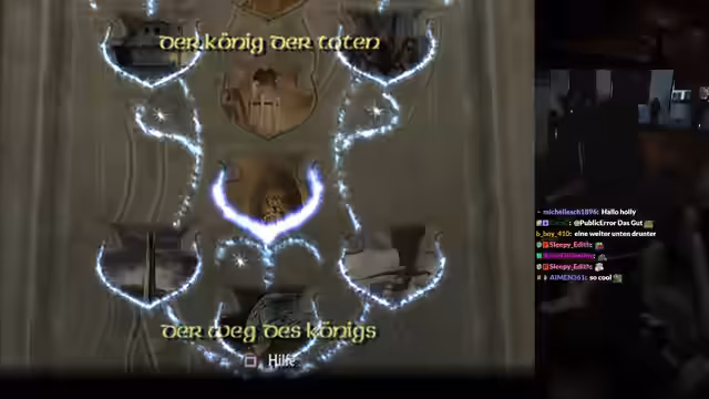 00:54:53Der Streamer und der Chat tauchen tief in die Lore von Herr der Ringe ein, während die Intro-Sequenz des Spiels läuft. Es werden historische Ereignisse des zweiten Zeitalters und die Aufzeichnungen Isildurs über den Einen Ring rekapituliert. Die Geschichte um Aragorn, den Thronerben, und den Plan, Sauron zu vernichten, indem der Ring zum Schicksalsberg gebracht wird, wird thematisiert. Der Streamer gibt zu, die Filme nie gesehen zu haben, was im Chat für Überraschung sorgt. Die Spieler können zwischen Aragorn, Legolas und Gimli wählen, wobei der Streamer sich für Aragorn entscheidet, um die "Pfade der Toten" zu bestreiten. Die Gänsehaut-erzeugenden Übergänge des Spiels werden gelobt.