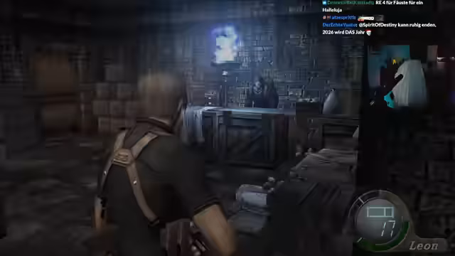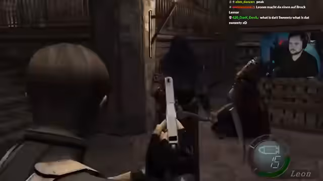 00:16:16Der Streamer erklärt die RE4-Handlung: Leon arbeitet nach Raccoon City für den US-Präsidenten, dessen Tochter wurde entführt. Die Entführung wird in Darkside Chronicles erklärt. Leon trifft in Spanien auf parasiteninfizierte Dorfbewohner (Ganados) und den Kultisten Lord Saddler, der die Welt kontrollieren will. Begleitet wird Leon von Luis Serra, dessen Rolle noch unklar ist. Ashley, die Präsidententochter, ist ebenfalls im Spiel und muss beschützt werden.