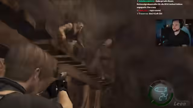 00:09:29Nach der Begrüßung startet der Streamer Resident Evil 4 auf PC. Es kommt zu technischen Herausforderungen: Das Spiel läuft zunächst im Fenstermodus, was nach Einstellungsanpassungen auf Vollbild korrigiert wird. Der Streamer bestätigt, die Original-Version ohne Mods zu spielen, bemerkt aber HD-Texturen. Während des Starts erklärt er kurz die Handlung von RE4: Leon Kennedy rettet die entführte Präsidententochter in Spanien gegen einen Parasiten-Kult um Lord Saddler.