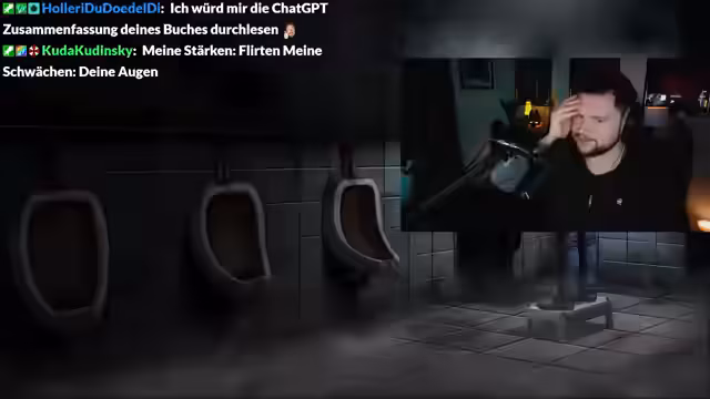 05:34:36Während des Wartens auf das Wiederverbinden der Server diskutieren die Streamer über Essgewohnheiten. Die Streamerin beschreibt ihre intensive Phase des Masseaufbaus und isst proteinreiche Nüsse, während sie ihre Selbstkontrolle bei Süßigkeiten in Frage stellt. Ihre Arbeitsvergangenheit wird thematisiert: Sie erzählt, in einem Fotostudio zu arbeiten, wo sie Fahrräder und später auch Dildos für einen Katalog freigestellt hat, was sie als Beschämung bezeichnet.