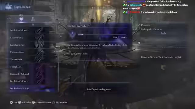 00:06:06Der Stream startet mit technischen Anpassungen und Begrüßungen im Chat. Der Streamer erwähnt die Ankunft von Unterstützern wie Chat Yitami-kun und Zidane. Es folgen technische Anpassungen an der Lautstärke und Tiefe des Spiels. Der Streamer spricht seine Vorfreude auf den 40. Zelda Anniversary und kündigt an, dieses Jahr Twilight Princess zu spielen. Parallel werden verschiedene Items für den bevorstehenden Run in Night Reign diskutiert, wie verbesserte Abwehrkonter und LP-Wiederstellung.