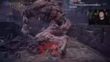 00:22:45Nach dem Sieg über Fulgur sucht der Streamer nach dem dämonischen Händler in der Spielwelt, was zu einem Bug führt, bei dem der Boss Libra aktiviert wird, obwohl seine Quest eigentlich nicht möglich ist. Dies wird als lustiger Zufall gewertet. Anschließend wird der Händler aufgesucht und wichtige Items gekauft, darunter mehrere Extraleben. Talismans und andere Ausrüstungsgegenstände werden von Fulgur gedroppt, die analysiert und für den Run bewertet werden, z.B. eine verbotene Technik, bei der der Streamer Angriffe mit dem Kopf abwehrt.