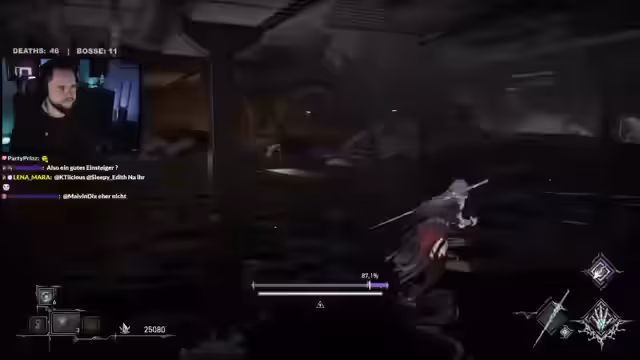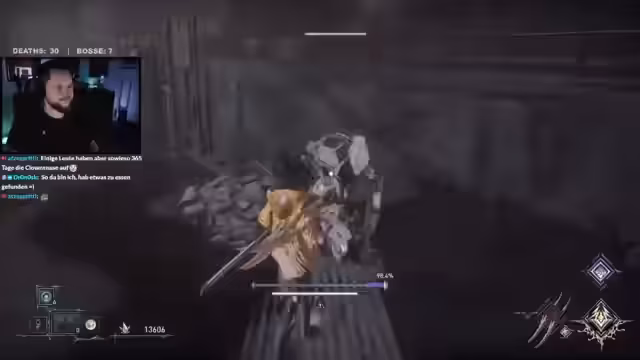06:47:00Der Streamer beschreibt das dunkle und komplexe Level-Design des Spiels, das an Demon's Souls und Dark Souls erinnert. Er betont, dass die Wege zu den Bossen oft herausfordernder sind als die Bosse selbst. Er äußert sich kritisch über einige Spielmechaniken, findet aber auch lobende Worte für das Gesamterlebnis, insbesondere für die düstere Atmosphäre und die Kämpfe.