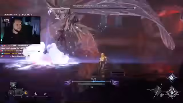 05:28:11Der Streamer kämpft gegen einen Boss namens Persephone, die als 'Unterweltkönigin des Kummers' bezeichnet wird. Dieser Boss hat mehrere Phasen und greift mit Laserangriffen an, die den Streamer töten können. Nach einem knapp gewonnenen Kampf erhält der Streamer einen neuen Zauber 'Flammstrache' und stellt fest, dass das Spiel schwierig ist, aber fesselnd. Diese Auseinandersetzung zeigt seine Verbesserung im Spiel und sein tieferes Verständnis für die Mechaniken.