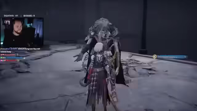 01:35:56Nach einer überstandenen Situation im Spiel, bei der unklar ist, wie das Überleben gelang, plant der Streamer, zu einem vorherigen Punkt zurückzukehren, um Upgrades zu holen. Er äußert sich überrascht über Items an einer Stelle, an der er bereits war. Es folgt eine Phase der Orientierungslosigkeit und der Suche nach dem richtigen Weg, wobei die Möglichkeit des Pausierens im Spiel positiv hervorgehoben wird. Der Streamer scherzt über seine 'hasserfüllte' Stimmung im Vergleich zu früheren Streams und freut sich, wieder live zu sein und im Spiel 'auf die Fresse zu bekommen'. Er bedankt sich bei Zuschauern für Geschenke und kommentiert das Erscheinen erster Dankesbekundungen im Chat. Anschließend werden verschiedene Spielmechaniken und Gegner kommentiert, darunter ein Doppelbosskampf mit Kettensägen und ein Anführer mit Messer. Der Schwierigkeitsgrad der normalen Gegner wird im Vergleich zu den Bossen hervorgehoben, und der Streamer schildert seine Strategie, mit speerwerfenden Gegnern umzugehen. Er plant, sich zu teleportieren und Lebensverbesserungen zu nutzen.