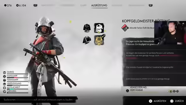 02:39:04Die Spielfigur entdeckt einen Babybären, der eine Klippe herunterfällt, und fragt sich, wohin die Reise führt. Es wird über die Open-World-Formel des Spiels diskutiert und betont, dass es sich um ein Meisterwerk handelt. Die Spielfigur findet einen Fuchs und Maskenfragmente. Nach dem Erhalt eines Talismans wird ein Fertigkeitspunkt vermisst. Die Spielfigur sucht nach dem Erzähler und hört sich die Geschichte des unsterblichen Samurai an, dessen Burg durch ein Feuer zerstört wurde. Es wird der Wunsch nach einer dezenten Rüstung geäußert. Nach dem Fund einer Leiche unter einem Baum wird ein Lager entdeckt, in dem ein Bär gesichtet wird. Die Spielfigur findet vier Windglocken und macht einen Ausflug zu einem Lager, wobei ein Stealthkill versucht wird. Der Stealthkill schlägt fehl, was zu einem intensiven Kampf mit einem Anführer führt. Nach dem Sieg wird ein Attentats-Skill verbessert. Die Spielfigur sucht nach den Windglocken und kümmert sich um diese. Es wird ein Kampf gegen mehrere Gegner begonnen, bei dem ein Wolf eine entscheidende Rolle spielt.