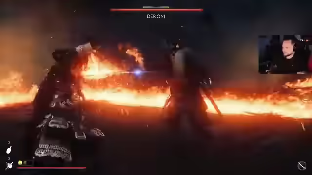 02:19:49Die Spielfigur plant einen Stealth-Angriff, um Gegner auszuschalten, wobei die Herausforderung darin besteht, unentdeckt zu bleiben. Es kommt zu Schwierigkeiten bei einem Kettenattentat, was zu einem Neustart der Strategie führt. Nach einem gescheiterten Angriff wird die Gegend mit einem Fernglas ausgekundschaftet und ein lohnender Aufstieg entdeckt, der jedoch in einer brennenden Umgebung endet. Die Spielfigur plant, einen Gegner abzulenken, um ihn mit einem Bogen auszuschalten, vergleicht den Kampf mit einer Szene aus Metal Gear und scheitert zunächst. Nach dem Sieg über den Irren Goro wird die Muskete des Oni gefunden. Goro gibt Informationen über die Oni-Räuber preis, die Arbeiter für ihre Burg suchen und Samurai gefangen nehmen. Es wird ein Treffen mit Azu bei der Burg des Oni vereinbart, um ihn zu besiegen. Die Spielfigur kündigt eine kurze Pause für Tee an, um sich aufzuwärmen, und erwähnt, dass sie ein T-Shirt trägt und das Spielen mit einem Pullover unangenehm findet. Es wird über die Länge der Musik im Spiel diskutiert und ein Flammenstoßmaske gefunden.