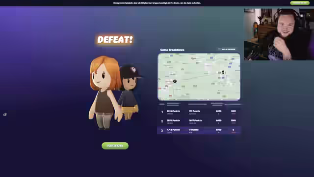02:08:31Die GeoGuessr-Runde war wild und führte zu interessanten Teamergebnissen. Es wurde festgestellt, dass Alaska doch nicht die Antarktis ist. Honeypoo ist sicher weiter, während Kaddi, Fischkopp und Holly um die verbleibenden Plätze kämpfen. Es gibt verschiedene Szenarien, wie die Gruppe sich zusammensetzen könnte, abhängig von den Ergebnissen der nächsten Matches. Honeypoo muss um 18 Uhr los, daher wird für die letzte Runde ein Best-of-1-Format in Betracht gezogen. Fischkopp und Holly treten in einem entscheidenden Match gegeneinander an. Die vorherige Runde gegen Fischkopp war sehr spannend und knapp, im Gegensatz zu den vorherigen Runden, die schnell verloren gingen. Es wird über die Möglichkeit eines Tiebreakers diskutiert, da mehrere Spieler punktgleich sind. Am Ende kommen Kaddi, Fischi, Holly und Honey Boo alle weiter und es wird ein Tiebreaker am Sonntag geben.