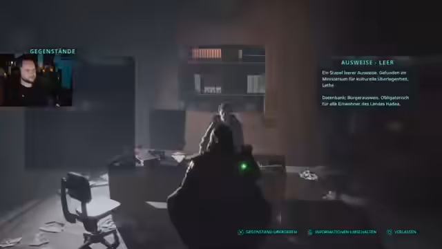 06:22:36Der Fokus verlagert sich stark in das neue Gebiet 'Ministerium für kulturelle Überlegenheit'. Dort müssen verschiedene Rätsel gelöst werden, darunter der Brückencode auf dem Computer und das Finden eines versteckten Safe-Codes. Es werden Gegenstände wie 'verbrannte Notizen', 'Level 3 Access Card' und 'Autoschlüssel mit dem Emblem des Ministeriums' gesammelt. Die Geschichte rund um 'Lord Asta' und 'Martin Rallst' wird durch die gefundenen Notizen und Texte vertieft und als besonders mysteriös und knifflig empfunden.