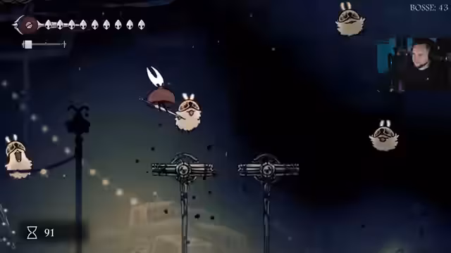 02:13:44Im Bereich 'Muschelwald' trifft der Streamer auf den Charakter Seth, einen Neugeborenen, der in dieser Welt erwacht ist. Später stößt er auch auf Hornet, die ebenfalls hier nach Knospen sucht. Er erkennt Seth als einen Gegner aus einer früheren Begegnung in der Vergangenheit und stellt fest, dass dieser Charakter gezielt platziert wurde. Eine zufällige Quest führt ihn zum 'Floh-Carneval', wo er Seth erneut in seiner Prime-Form als Bosskampf herausfordert.