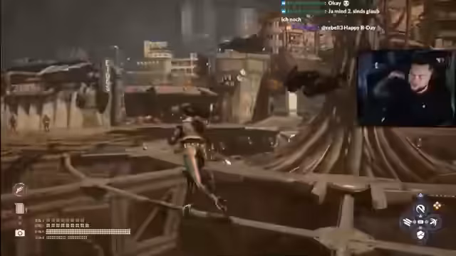 01:08:01Zurück im Unterschluppf in Zion geht es mit der Geschichte weiter. Der Streamer spricht mit Adam, um die Mission 'Sprich mit Jett' fortzusetzen. Bei der Konfrontation mit Jett in einer emotionalen Szene, in der er weint, wird die Mission erfolgreich abgeschlossen. Daraufhin erhält der Streamer eine neue, ungewöhnliche Nebenquest: Er muss einen Teddybär für Jett finden, was zu humorvollen Kommentaren im Chat führt.
