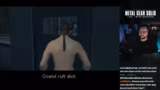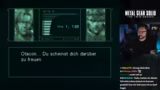 01:01:40Im weiteren Verlauf wird die Figur Meryl eingeführt, die Snake aus seiner Zelle befreit und ihm eine PAN-Karte gibt, mit der er bestimmte Türen öffnen kann. Nachdem er einen Genome Soldaten im Kampf besiegt hat, hat der Streamer Ärger mit der Steuerung seiner Waffe. Er muss die Schultertasten nur leicht antippen, um die Waffe wegzulegen. Er erkundet weiter die Basis und findet eine versteckte Wand, die mit C4 gesprengt werden kann, um einen alternativen Pfad freizulegen.