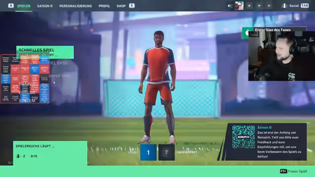 03:19:55Zurückgekehrt zum Gaming-Bingo starten die Streamer das Spiel Rematch, ein Fußball-Simulator. Sie bilden ein Team gegen drei andere Spieler und versuchen, ein Spiel mit 3:0 zu gewinnen. Die Kommunikation und das Verständnis der Spielsteuerung stellen anfangs eine Herausforderung dar. Ein Mitspieler handelt jedoch kontraintuitiv und verhindert den Sieg, was zu Frust und Anspannung führt.
