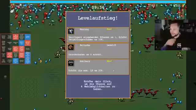 02:13:37Da Rocket League sich verzögert, wird Vampire Survivors zum Hauptspiel des Streams. Ein Spielstand scheint verloren gegangen zu sein, weshalb ein neuer Run auf Level 1 beginnt. Spieler und Chat diskutieren über die Effizienz von Charakteren, Power-Ups und Strategien für einen erfolgreichen Durchlauf. Der Versuch, schnell Level 25 zu erreichen, gestaltet sich schwierig, da der Schaden gegen Gegner mit der Zeit zu schwach wird. Dennoch wird der Run mit viel Engagement und dem Sammeln von Erfahrungspunkten fortgesetzt.