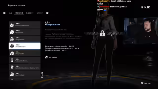 04:49:38Der Streamer erinnert sich an ein bevorstehendes Geburtstagsessen und die Handwerker, die vorher kommen. Es wird überlegt, was es zu essen geben wird. Der Streamer stößt auf einen Geschützturm, der Plasma schießt und muss ihn zerstören. Es wird ein anderes Outfit benötigt, um den Blutdruck zu senken. Ein Exospine im Fokus auf Leistung im Tachi-Modus wird gefunden. Der Streamer erinnert sich an Quicktime-Events und die Leitermechanik im Spiel. Es wird ein Mensch gescannt und festgestellt, dass es sich um zwei Gegner handelt. Der Streamer muss auf etwas klettern und springen, wobei die Leitermechanik kritisiert wird. Es wird überlegt, ob ein Achievement für das Schaffen ohne Laser zu triggern existiert. Ein Exospiner-Noise wird gefunden und der Streamer glaubt, dass er etwas craften kann. Es wird ein Nanosuit gefunden, der zum Gebiet passt. Der Streamer hat 31 von 49 Dosen gefunden und spricht über die Verbindung zur Kolonie. Ein Drohnen-Upgrade-Modul wird gefunden. Der Streamer folgt seiner Nase und findet eine Kiste. Es wird überlegt, ob das Outfit gefällt und die Schuhe als Aua empfunden. Der Streamer muss sich festhalten und springen, wobei die Mechanik als schlecht empfunden wird. Seile werden als Nemesis bezeichnet und die Mechanik wird als Kackspiel bezeichnet. Es wird überlegt, ob das Seil ein Checkpoint ist.