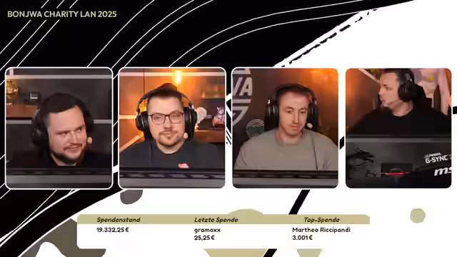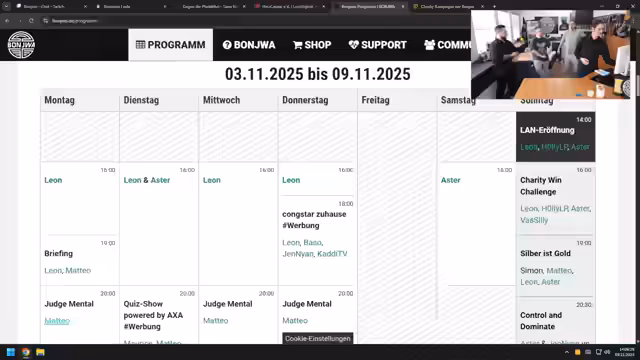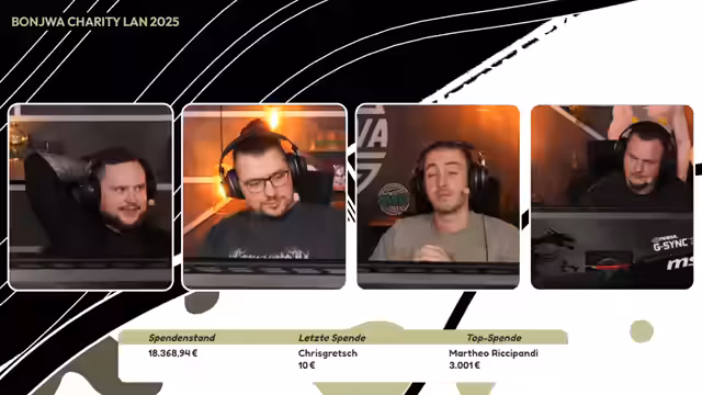 Die Bonjwa LAN startet heute um 14 Uhr und läuft über fünf Tage als Charity-Event. Ziel ist es, Spenden für verschiedene Organisationen zu sammeln. Das Programm umfasst tägliche Gaming-Sessions bis 19 Uhr, gefolgt von Abendformaten wie „Silber ist Gold“. Ab morgen beginnen die Tage bereits um 10 Uhr mit „Geplantes Chaos“ und täglichen Vorstellungen von Charity-Projekten. Besondere Gäste, darunter Lynn als Koch, werden erwartet.