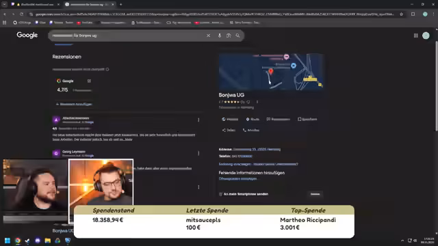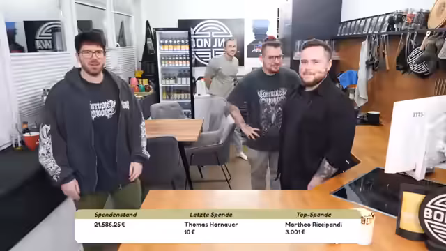 00:32:53Der aktuelle Spendenstand wird regelmäßig eingeblendet, und es werden Höchstspender sowie neue Spenden hervorgehoben. Es wurden auch eigene Werbeclips für die Charity-Organisationen gedreht, die im Laufe des Streams gezeigt werden. Kurz nach Beginn des Streams wurde bereits ein Spendenstand von über 4600 Euro erreicht, was die Veranstalter sehr freut. Es wird betont, dass Spenden freiwillig sind und nur geleistet werden sollen, wenn es finanziell möglich ist. Die Anwesenheit der Zuschauer ist bereits eine große Unterstützung, da sie die Reichweite für die Projekte erhöht. Der Streamer verabschiedet sich vorübergehend, um sich auf das Abendprogramm vorzubereiten, während die anderen Streamer Kaffee zubereiten und über mögliche Spiele diskutieren. Der Spendenstand steigt währenddessen rasant auf über 10.000 Euro an, was für große Begeisterung sorgt.