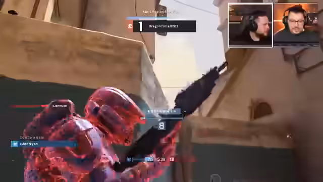 04:54:35Die Spieler starten eine Runde Halo Infinite im Teammodus, wobei Leon und der Streamer gegen Asta und Vasily antreten. Es gibt anfängliche Schwierigkeiten bei der Teameinladung und der Controller-Erkennung, da Halo mit Microsoft-Konten verknüpft ist. Nach erfolgreicher Konfiguration beginnt das Spiel. Der Streamer, der angibt, Halo nur einmal zuvor gespielt zu haben, zeigt sich überraschend gut und erzielt mehrere Kills. Vasily und Asta kämpfen anfänglich, passen sich aber schnell an. Es entwickelt sich eine intensive Partie mit viel Bewegung und dem Einsatz von Granaten und Nahkampfangriffen. Die Teams versuchen, taktisch vorzugehen, wobei der Streamer und Leon sich gut ergänzen, während Asta und Vasily Schwierigkeiten haben, ihre Strategie zu koordinieren. Trotzdem ist die Stimmung ausgelassen und humorvoll, mit viel Neckerei zwischen den Spielern. Die Runde endet mit einem Sieg für Leon und den Streamer, was zu weiteren Diskussionen über die Gaming-Fähigkeiten der Teilnehmer führt.