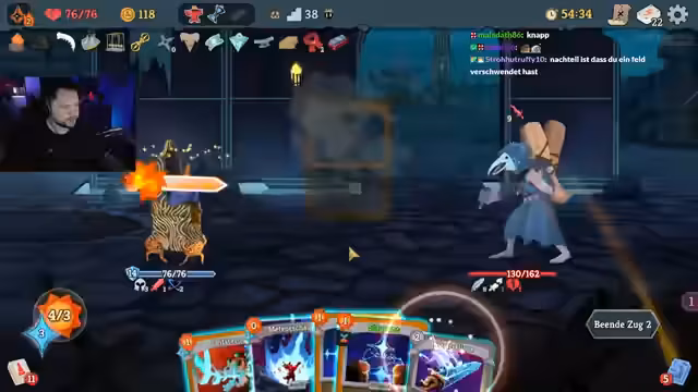 01:27:44Der Run wird zunehmend frustrierend, da der Streamer mit einem schlagintensiven Elite-Gegner zu kämpfen hat, der viel Schaden durch seine Angriffe verursacht. Er stellt fest, dass sein Deck unzureichend auf diese Gegner eingestellt ist und schiebt Teilschuld auf den Chat, dessen Kartenentscheidungen er zu oft gefolgt ist. Stream-Ende droht, ein technischer Absturz und der Hinweis auf eine persönliche Note, die er dabei verlor, bestätigen dies.