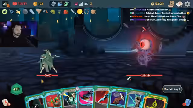 00:15:16Nach einer Entscheidung für die Wut-Karte, die 10 Schaden anrichtet, beginnt der Streamer einen neuen Run. Er erhält zusätzliche Schlag- und Verteidigungskarten und entwickelt eine Strategie, die auf schnellen Schaden abzielt, da ein Shop erst später in der Laufbahn erscheint. Er trifft auf einen schweren Gegner, den er mit Neutralisieren und gezielten Angriffen bezwingt, wobei die Erhöhung der Kraft und das Entfernen von Artefakten als Schlüssel zum Sieg gelten.
