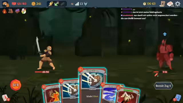 00:07:31Nach einem kurzen Plausch mit dem Chat über Tekken 8 und den unvorhersehbaren Auftritt der Bob-Figur wird das Gameplay fortgesetzt. Ein Elite-Gegner, der Wasserfallriese, identifiziert, der den Spieler auf Schadensoutput und Blockfähigkeiten testet. Die Entscheidung fällt, ein Kartenpaket auszuwählen, das das Deck stärkt, wobei das Gold im Shop geopfert wird, um Zugang zu besseren Karten zu erhalten. Ein strategischer Fokus auf sichere Heilung wird als wichtig erachtet, bevor es in den Kampf geht.