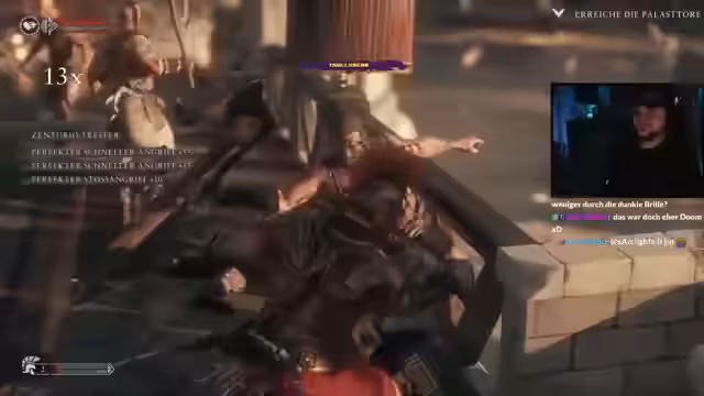 02:50:15Während des Gameplays äußert sich der Streamer zu verschiedenen Aspekten von Ryse: Son of Rome. Er kommentiert Soundeffekte, die ihn an Metal Gear Solid erinnern, und die Intensität der Kämpfe. Er gibt taktische Anweisungen an seine virtuellen Truppen, wobei er sich über deren vermeintliche Unfähigkeit zum selbstständigen Denken lustig macht. Es folgen Überlegungen zur optimalen Vorgehensweise bei der Einnahme von Katapulttürmen und zur Effektivität verschiedener Angriffsstrategien. Er entdeckt, dass er durch Finisher mehr Schaden verursachen kann und levelt seine Fähigkeiten auf, wobei er besonders die Erhöhung der Inventarkapazität für Projektile hervorhebt. Er kommentiert die emotionale Wirkung der römischen Story und scherzt über die Einnahme eines "Barbarenpuffs". Er bewundert die Grafik des Spiels aus dem Jahr 2013 und vergleicht das Kampfsystem mit dem von Batman, wobei er jedoch die einfachere Ausführung in Ryse hervorhebt. Er erklärt, wie die Speere funktionieren und dass man sie jederzeit werfen kann. Er gibt taktische Anweisungen, wie man die Bogenschützen aufhalten kann.