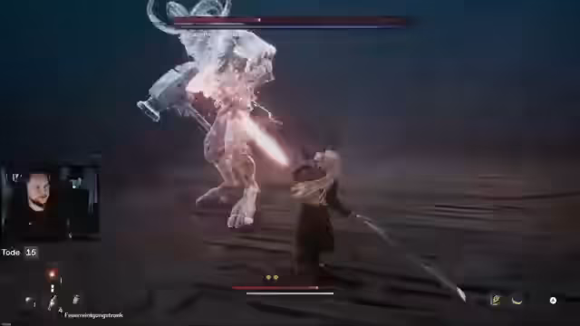 04:55:15Es werden Flashbacks an die Gamescom vor sechs Monaten erwähnt, wo ein Bosskampf stattfand, der 40 Minuten dauerte und nicht gewonnen werden konnte. Es wird vermutet, dass das Spiel absichtlich schwer gemacht wurde und die Mechaniken unbekannt waren. Der Streamer bereitet sich auf einen erneuten Kampf gegen diesen Boss vor und vermutet, dass es sich um denselben Boss handelt, der auf der Gamescom anspielbar war. Es werden Graulwolf-Sachen gesucht, aber stattdessen der Helm des Nomaden gefunden. Es wird spekuliert, dass der Boss Feuerwiderstand benötigt und daraufhin entsprechende Ausrüstung ausgewählt. Es wird erwartet, dass der Kampf schwierig wird und ein Sieg beim ersten Versuch unwahrscheinlich ist, da der Boss einen immer anzündet, selbst wenn man pariert.