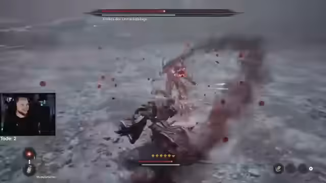02:57:47Es ist eine große Arena. Das ist jetzt mal? Slakes Design. Viper ist gefallen, aber wir spüren trotzdem seine Präsenz. Das Timing von seinem manöplichen Kass. Und das ist ein Doppelschlag. Es wird nicht gesagt, dass man jetzt jedes Mal den Weg laufen muss. Es ist gar nicht so einfach, was das im Griff ist. Coole Bosse bis jetzt. Zweite Phase kommt jetzt. Das kommt mir gerade so vor wie, du musst sterben bei dem. Zwei Phasen-Boss. Bei dem wünsche ich mir jetzt eine schnellere Waffe, aber wir kommen damit auch schon gut klar. Die nächste Phase ist übersichtlicher. Blocken ist ja OP. Es wird überlegt, noch ein bisschen zu leveln. Ausdauer wie der Herstellungsrate ist auch ganz nice eigentlich. Es gibt richtig viel Rüstung noch im Lager, wo man die Essenz rausziehen kann. Es gibt geringfüge erhöhter schaden bei angriffen von schwachpunkten. Mehr geist durch präzise abwehr das brauche ich glaube ich.
