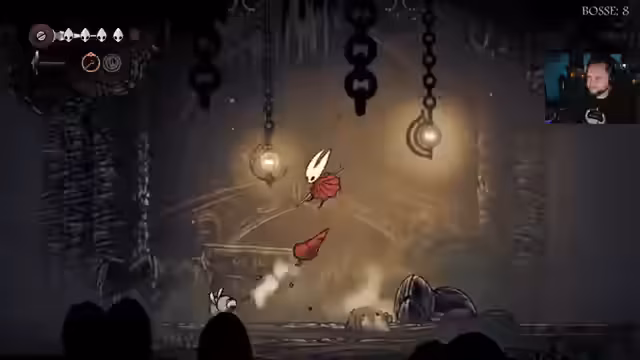 08:21:06Der Stream beginnt mit einer scheinbar ziellosen Erkundung, bei der der Streamer nach Pokémon-ähnlichen Fun-Facts sucht. Dabei fällt auf, dass kaum noch Gegner Gebetsperlen fallen lassen. Der Streamer vergleicht Silksong mit dem ersten Teil und stellt fest, dass ein No-Death-Run ohne die erlernten Fähigkeiten fast unspielbar sei und bei ihm Schmerzen verursache. Er beschreibt das Spiel als ein, dass sich wie ein guter Wein entfaltet.