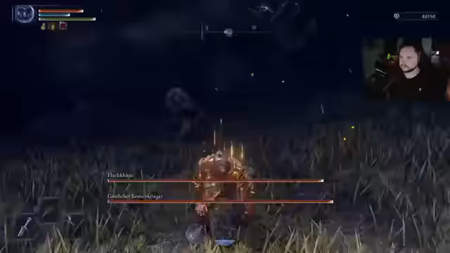 02:58:35Während auf die Wartezeit für Outbreak wird, wechselt der Streamer zu Elden Ring und spielt den Charakter 'Vogelmann'. Er beschreibt dessen Spielstil als interessant, aber herausfordernd, da man viel über die Angriffsmuster der Gegner wissen muss. Der Vogelmann hat eine einzigartige Block-Animation und kann durch erfolgreiches Blocken heilige Explosionen auslösen. Der Streamer kämpft mit dem Build und sucht nach passiven Relikten, um den Charakter zu stärken, und findet den Boss 'Pferdemann' besonders beeindruckend, auch wenn der Kampf anstrengend ist.