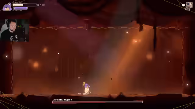 03:18:40Die Streamerin kämpft gegen einen weiteren Boss namens Cornelius. Sie muss Stacheln ausweichen und versucht, den Boss mit Sprüngen zu treffen. Nach einem harten Kampf, bei dem sie am Ende nur noch ein HP hat, kann sie Cornelius besiegen. Als Belohnung erhält sie die Träne der Reflexion, die sich auf kreative Zweifel und Lampenfieber bezieht. Die Mission des Karnevals scheint weiterzugehen.