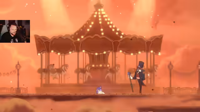 02:44:45Die Streamerin startet einen schweren Bosskampf gegen den Manipulator. Sie muss Angriffe ausweichen, die aus dem Boden oder aus der Mitte kommen. Der Kampf wird als Geduldstest beschrieben, bei dem sie manchmal sterben muss, um den Angriffsmuster zu verstehen. Nach mehreren Versuchen kann sie den Boss besiegen und erhält eine Zugabe, die sich auf die Geschichte des Karnevals bezieht.